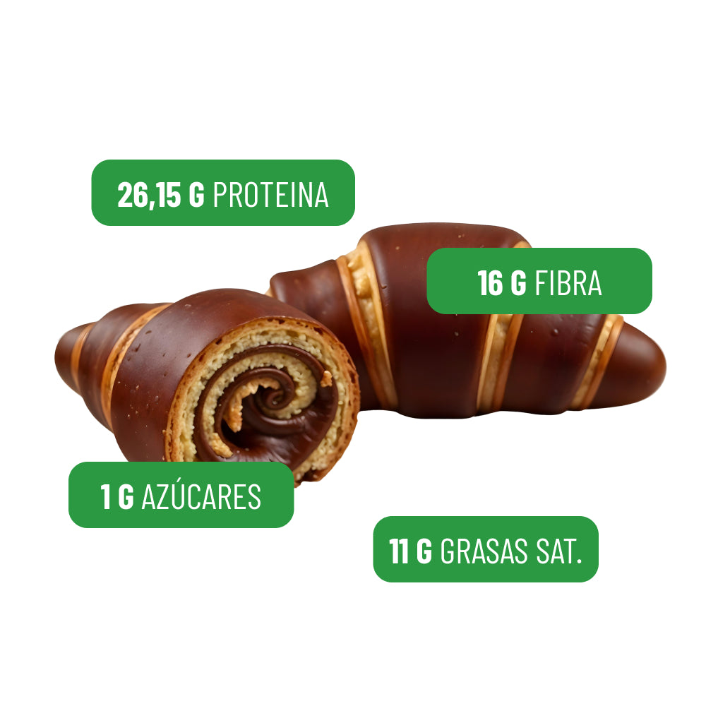 El nostre croissant proteic és perfecte per a esportistes, persones actives, que busquen snacks saludables entre menjars o simplement volen gaudir d'un dolç més nutritiu. Cada mos t'aporta proteïna de qualitat i el sabor intens de la doble xocolata.